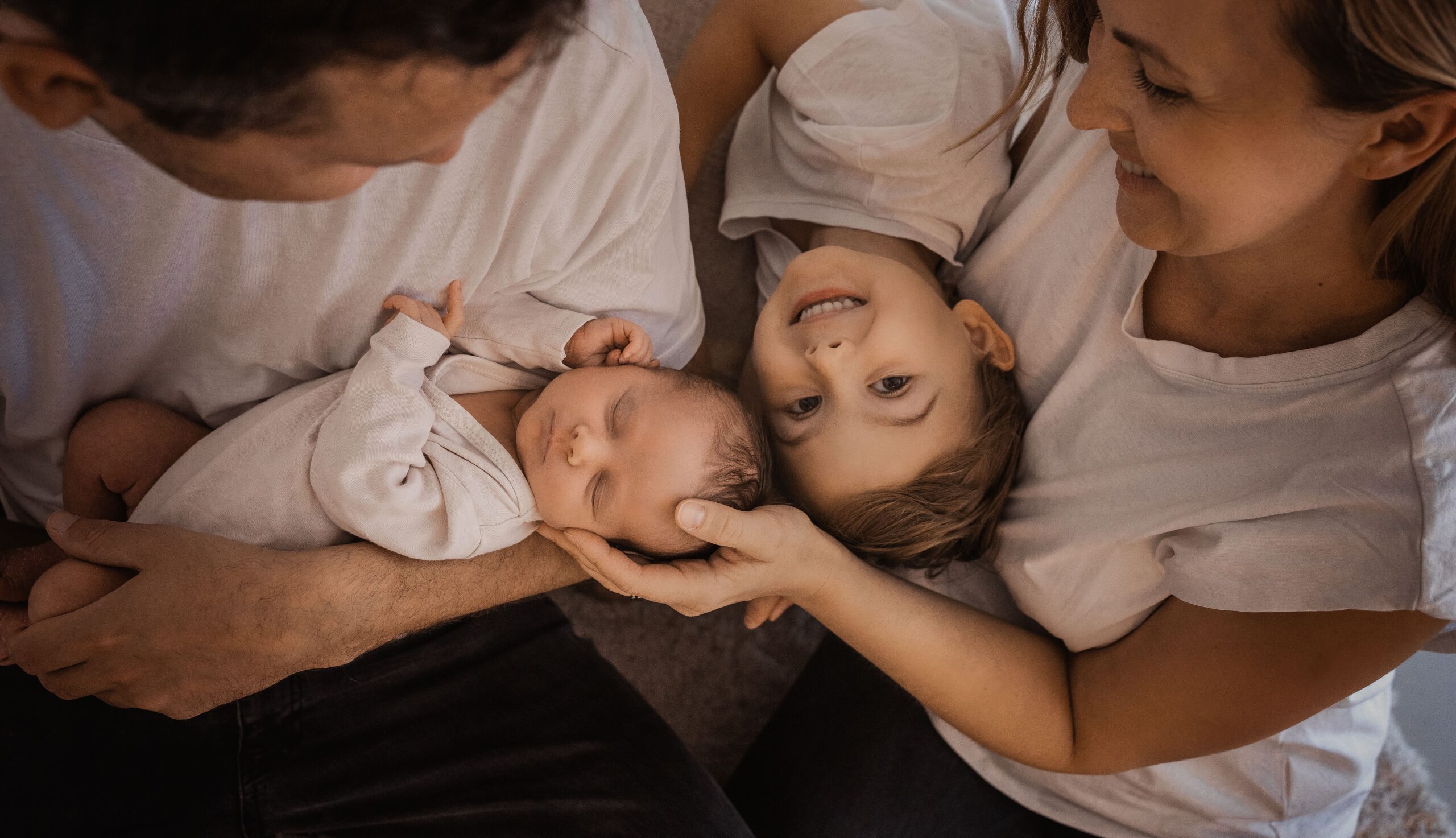 Etwa eine Stunde später kommen dann das Geschwisterkind (oder die Geschwisterkinder) und der Papa dazu. So ist die Zeit für das große Kind nicht zu lang – und alle können entspannt in den gemeinsamen Teil des Neugeborenenshootings starten. Dieser Ablauf hat sich besonders für Familien mit kleinen Kindern bei Babyfotos mit Geschwistern bewährt.